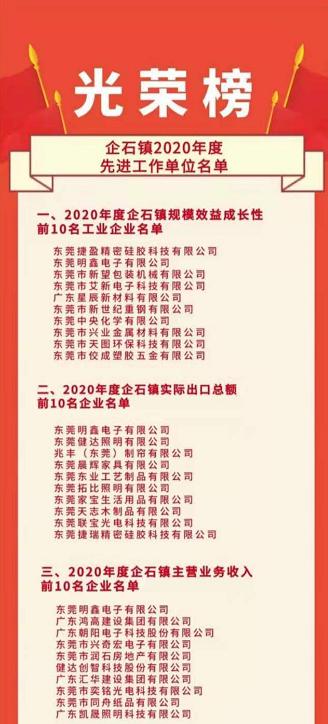 3月3日上午,企石鎮(zhèn)召開2020年度工作總結(jié)大會,發(fā)布了《企石鎮(zhèn)2020年度先進工作單位名單》,包括《2020 年度企石鎮(zhèn)規(guī)模效益成長性前10名工業(yè)企業(yè)名單》《2020 年度企石鎮(zhèn)實際出口總額前10名企業(yè)名單》《2020 年度企石鎮(zhèn)主營業(yè)務收入前10名企業(yè)名單》等10份名單。會議對2020年度企石鎮(zhèn)主營業(yè)務收入前10名企業(yè)進行了現(xiàn)場表彰。新望公司有幸入列:企石鎮(zhèn)2020年度規(guī)模效益成長性前10名。